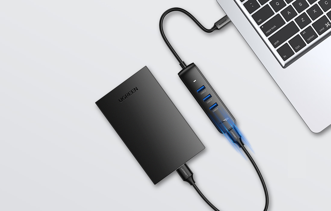 Adapter USB firmy UGREEN pozwala na podłączenie wielu urządzeń jednocześnie. Został wyposażony w 4 porty USB 3.0, a prędkość transmisji do 5 Gbps pozwala przesyłać Twoje pliki w niezwykle szybkim tempie. Kopiuj zdjęcia, filmy i dokumenty w kilka sekund. Co więcej, dzięki zabezpieczeniom przeciw przepięciom elektrycznym i przegrzaniu możesz być pewien, że Twoje urządzenia są bezpieczne. Nie ma też potrzeby instalowania żadnego oprogramowania, czy sterowników.