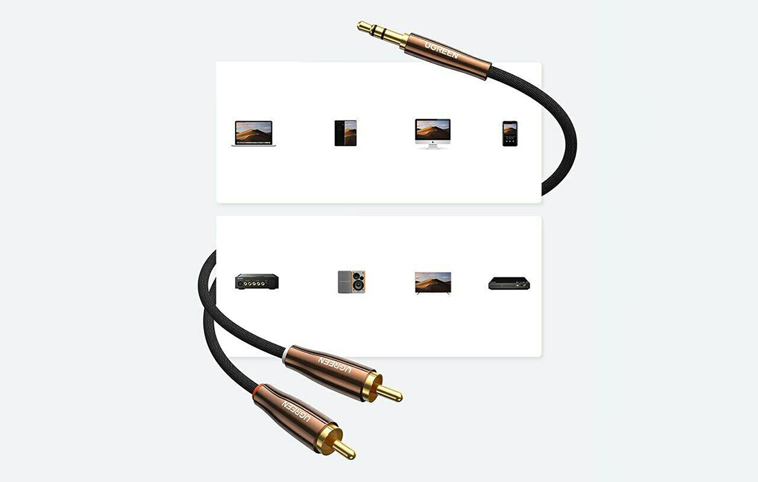 Kabel UGREEN AV170 3,5 mm do 2x RCA jest kompatybilny z wieloma różnymi urządzeniami. Zapewnia doskonałą jakość dźwięku, a dzięki pozłacanym złączom zaskakuje wytrzymałością i odpornością na zużycie. Wyróżnia go także wyjątkowo niska podatność na uszkodzenia - będzie doskonale Ci służył przez długie lata.